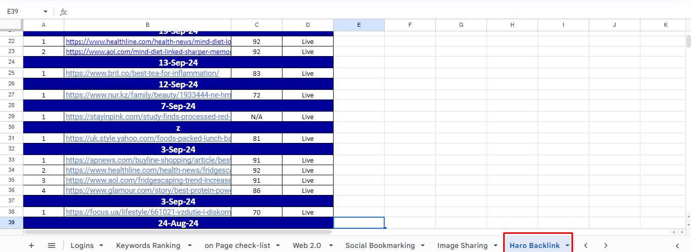 | Web 2.0 link creation | 10 | 15 | 25 | 40 |